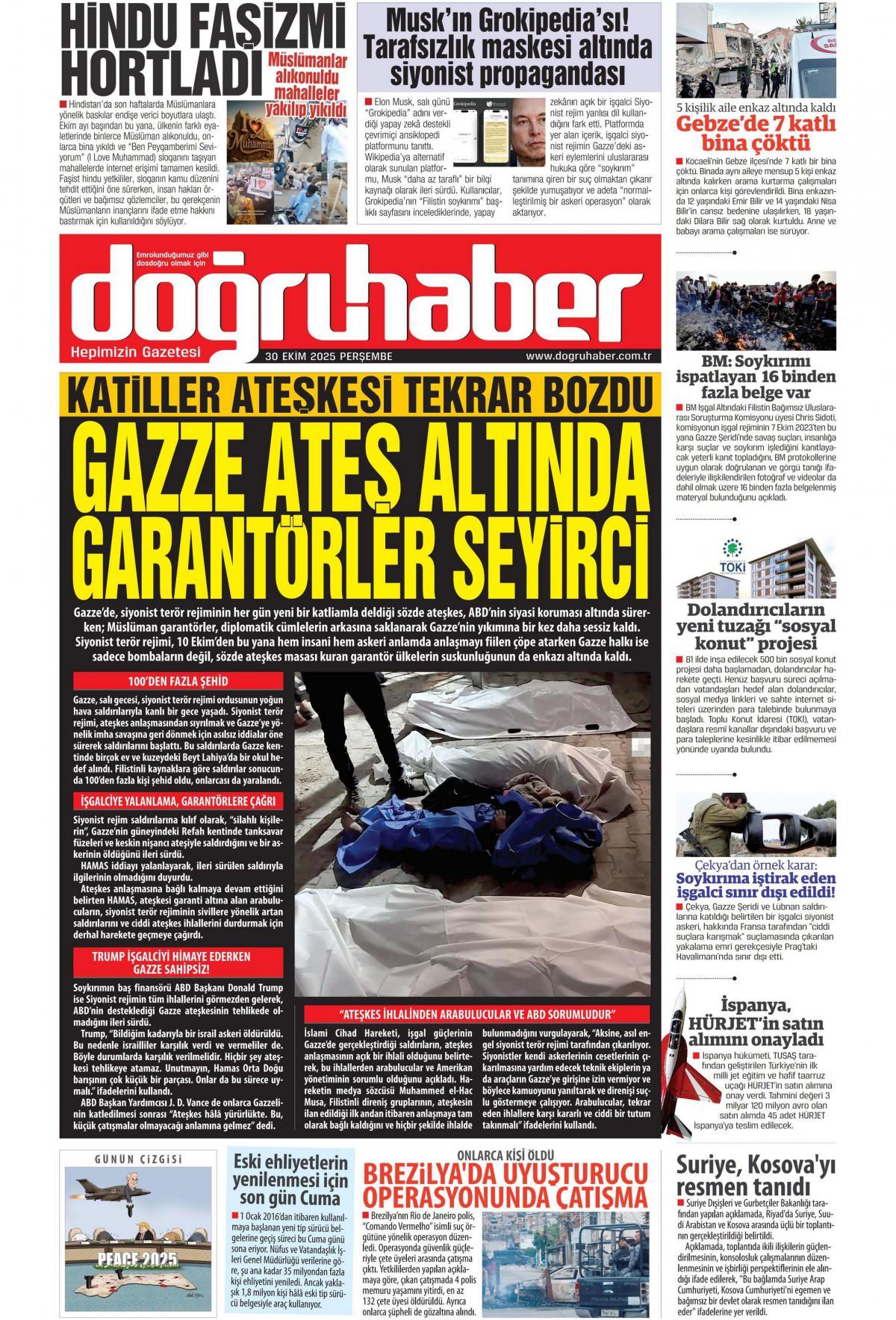 Doğru Haber Gazetesi 30 Ekim 2025 Günü Manşeti