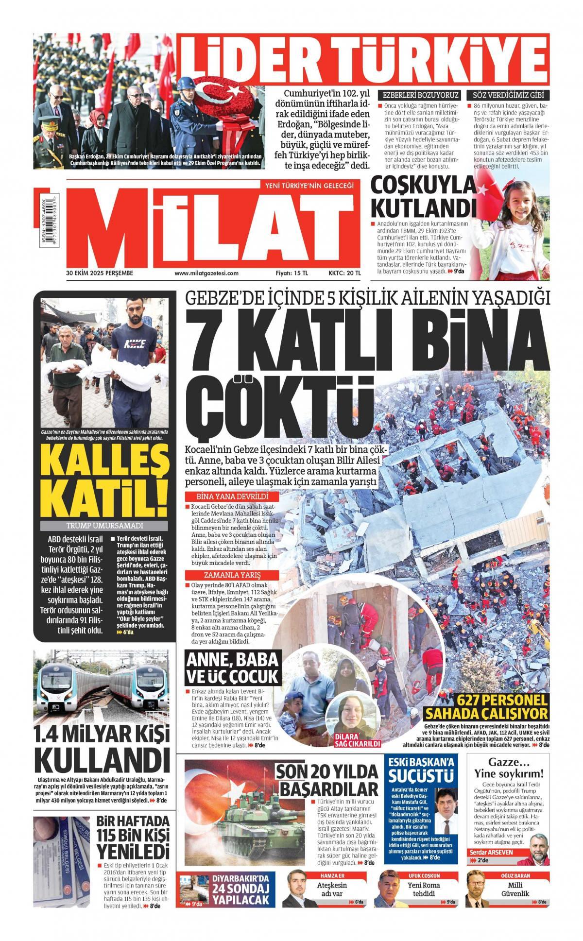 Milat Gazetesi 30 Ekim 2025 Günü Manşeti