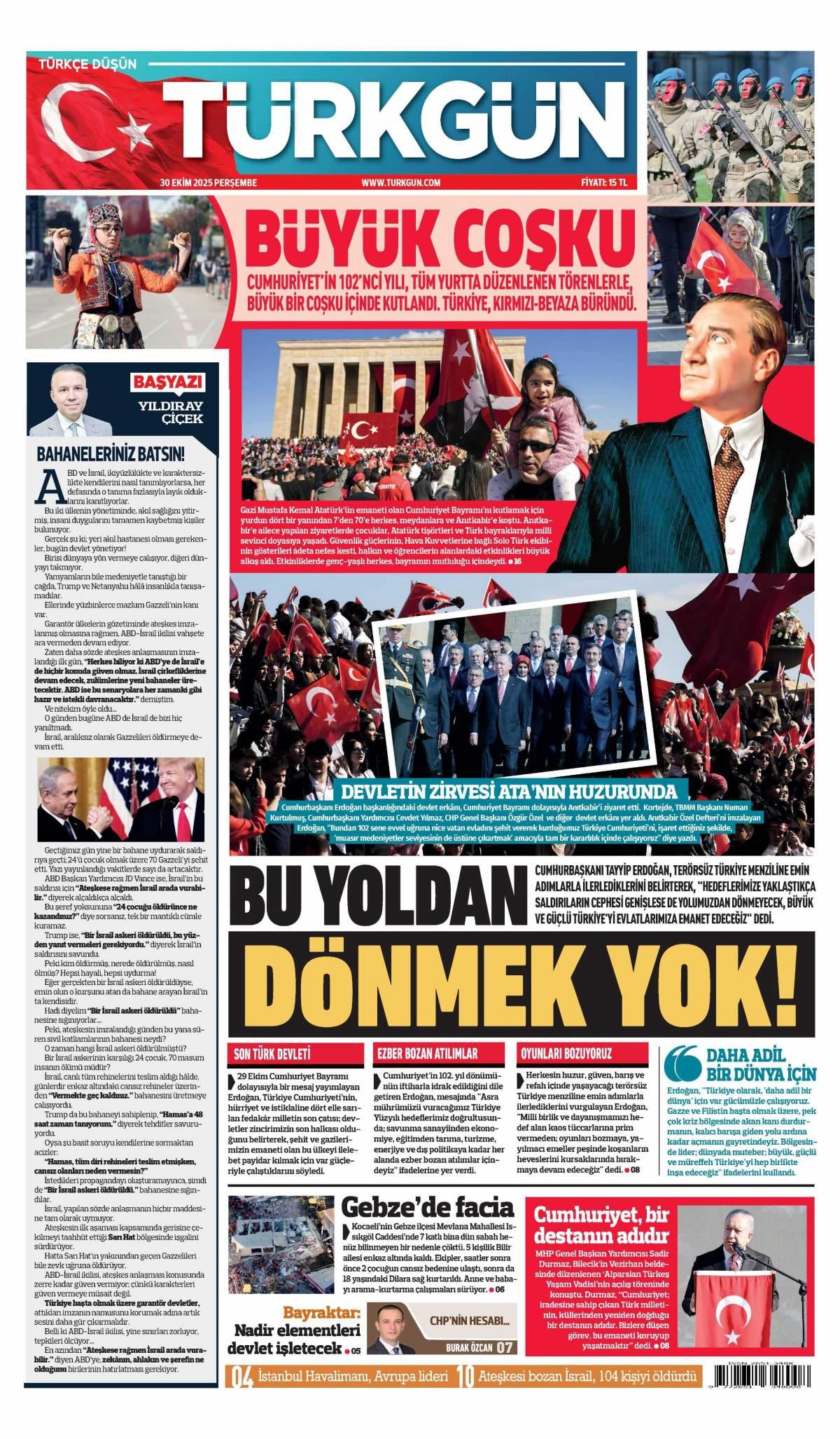 Türkgün Gazetesi 30 Ekim 2025 Günü Manşeti