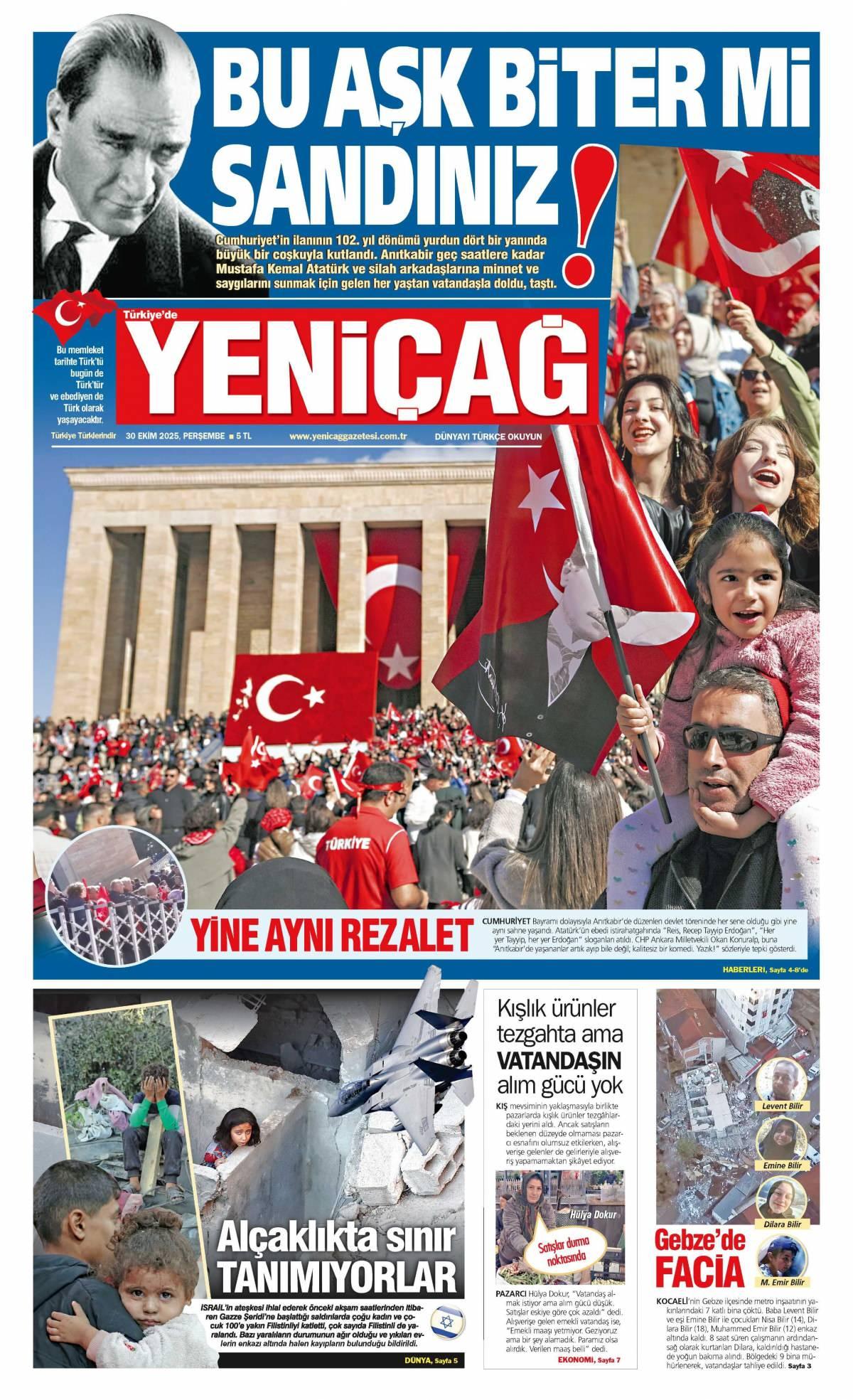 Yeni Çağ Gazetesi 30 Ekim 2025 Günü Manşeti